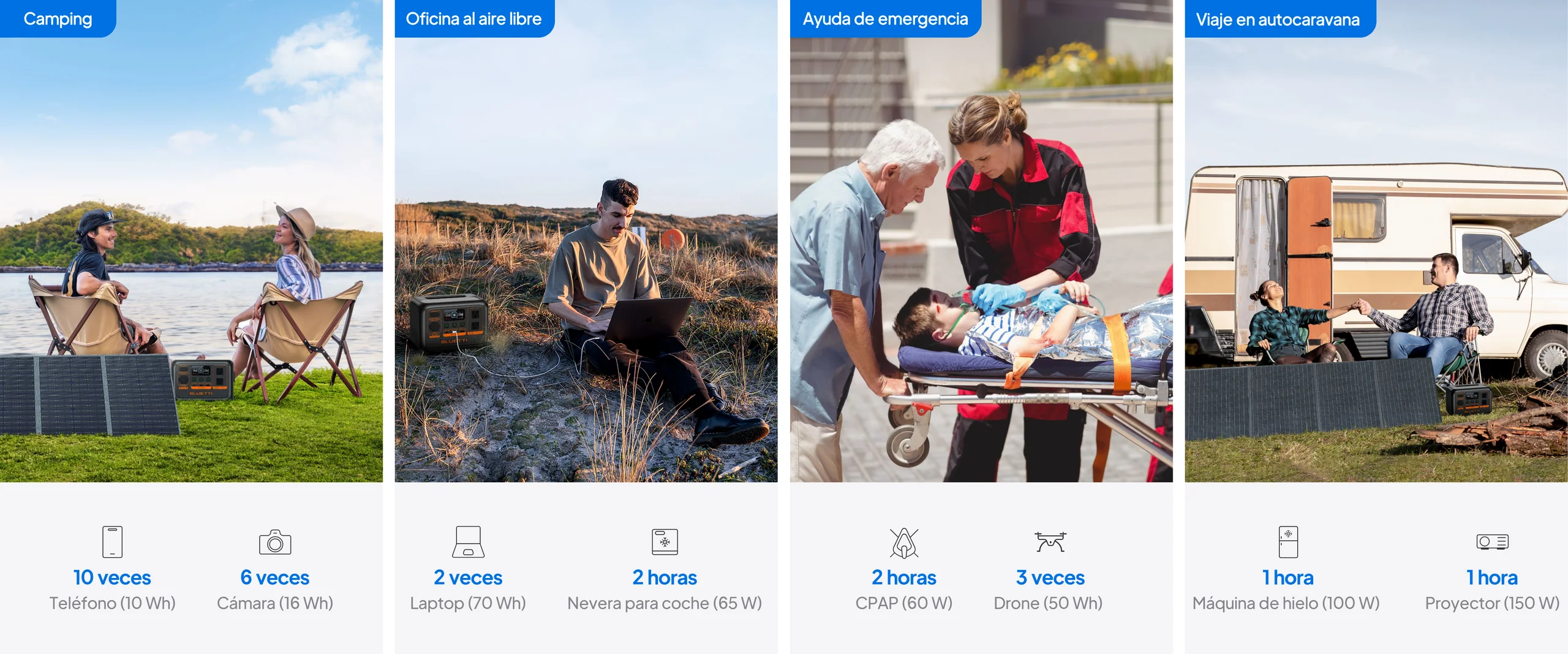 Alimentar sus dispositivos. Las estaciones eléctricas portátiles Bluetti convierten la corriente continua en corriente alterna, que puede utilizarse tanto en interiores como en exteriores.